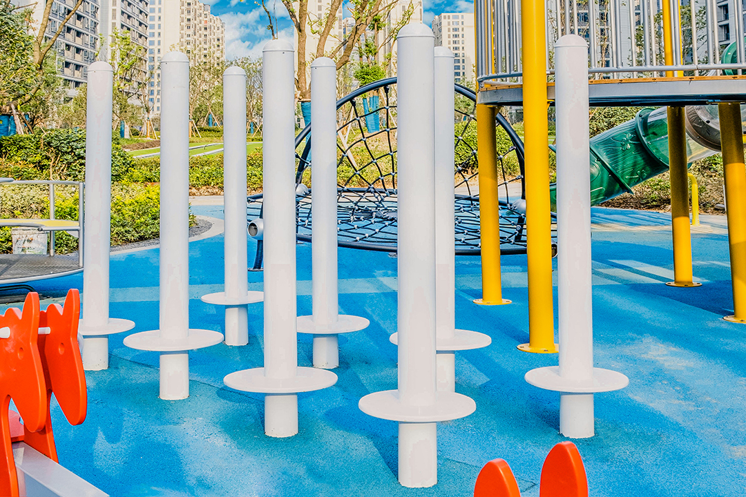 项目位于浙江省杭州市富阳区秦望小区。飞鲸游乐设计团队以为儿童创造出良好的游乐玩耍环境作为出发点,从材料、色彩、形态等去做设计,在儿童玩耍的同时以培养他们的美好情操,陶冶心灵,融入自然,寓教于乐。色彩上我们选用了鲜艳明快的颜色,用以区分不同的空间领域,场地通过不规则的铺装变化,在整个景观设计相协调的基础上突出特色,调动儿童的积极性,增加了游玩的乐趣。整体设计以未来儿童的真实需求为设计出发点,打造出了一个充满童趣的儿童游乐空间,为周边居民提供了一个遛娃好去处。