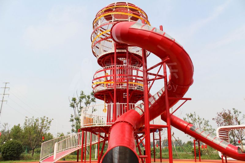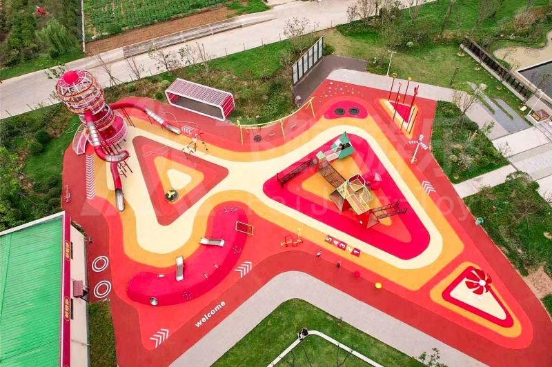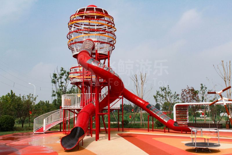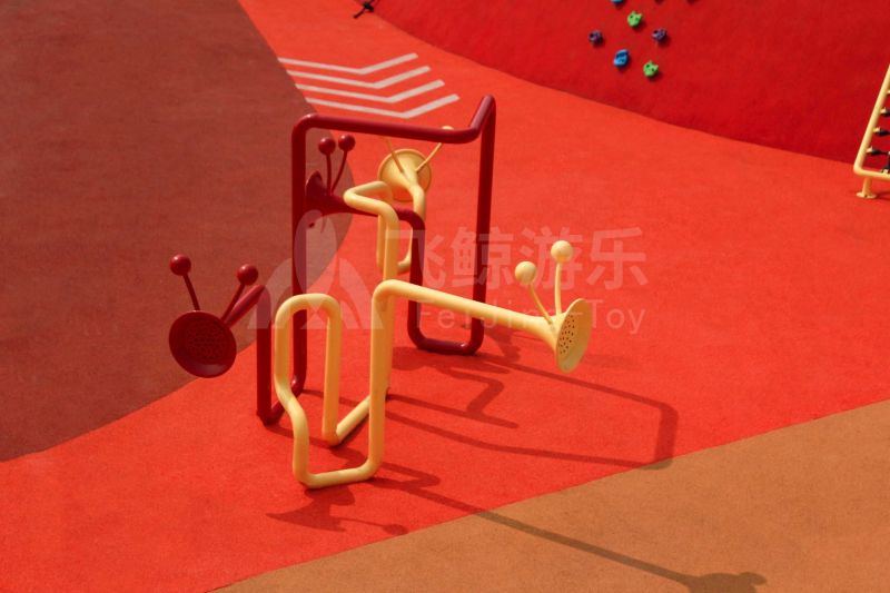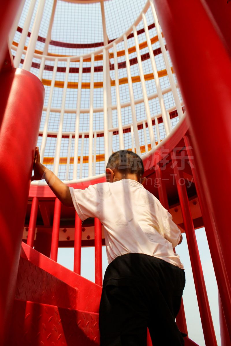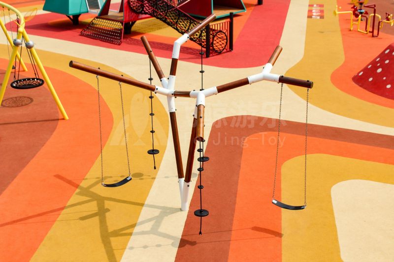 场地整体设计以集团产品“红枣”--红枣色系规划设计,彩色地绘红橙相间激发活力之情。灯塔滑梯由红枣造型设计提炼而成,白天他是火热的高塔滑梯,夜里他是闪烁美丽的灯塔。双滑梯体验不同高度滑落快乐,搭配益智小设备,陕西打击乐器、数字滚筒,玩法更多样。 勾勒地形,攀登或者滑下起伏之间多一种趣味,陕西爬网、攀登点、爬绳,总有一种让你体会到攀爬的快乐。精灵树屋乐趣多,攀爬至不同树屋,是属于自己秘密基地。驻足一番,看看风车,感受下夏天的风。绳网、木板、 多种材质攀爬和触摸,都在和自然对话。亲近自然的空间往往能够提供无形的吸引力,更多丰富的材料和空间,感知自然、与自然互动,能够让孩子们沉浸其中。 陕西秋千荡漾着,荡起内心的欢愉、安逸。大大的鸟巢秋千,可以坐着躺着,和小伙伴背靠背也是不错选择。月亮秋千给人梦幻感觉,让荡秋千多了一种梦幻感觉。骑上摇摇车,摇呀摇,摇到记忆里最快乐的时光。远处有朵散落的云,站在云朵上,蹦蹦跳跳。 飞鲸游乐本次儿童空间设计遵循趣味性的原则,曲线宽阔的奔跑环境、丰富活泼的色彩激起儿童自在玩耍。趣味设备点缀在场地各处,让儿童主动探索发现乐趣,尽情挥洒他们的天真与烂漫。