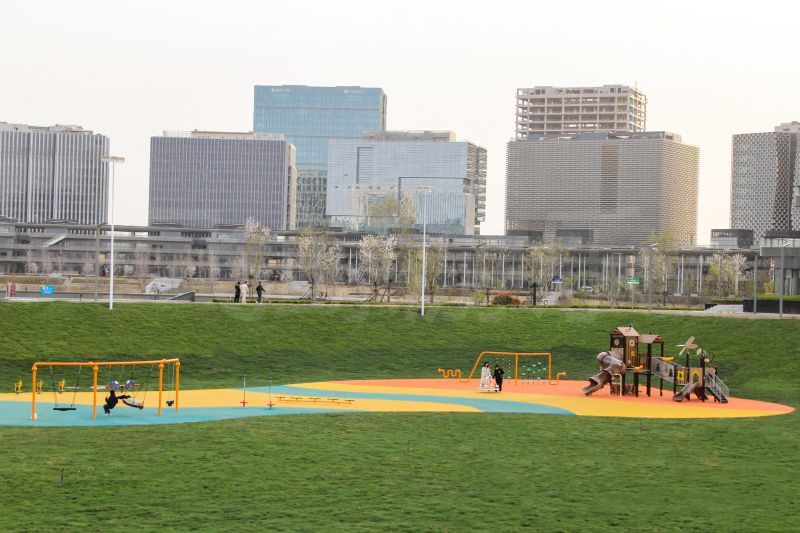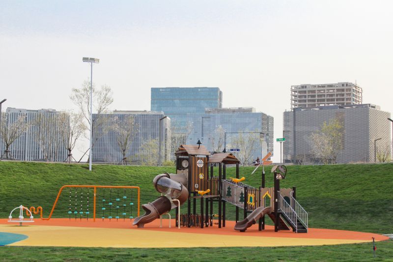 满眼绿意感受到春天气息,石径通向乐园快乐之地,树屋滑梯与游乐设备散落在绿地中央,充满自然元素树屋滑梯玩乐多样,多种滑梯与陕西爬网组合,让儿童感受攀爬和滑落的乐趣。绳网让玩乐多一份挑战与探索,益智小件让可爱脑袋活力运转。 乐园里散布多种游乐设备。环形陕西秋千针对不同年龄段人员设置不同类型座椅,兼顾安全与乐趣。荡漾的秋千荡起儿时美好回忆,与孩子一起感受童年快乐。喂~声音在管道里奇妙传送,春日里秘密在悄悄传递。顺着绳网向上攀爬,拓展运动一番,活力蓄能。摇摇车摇呀摇,好不惬意,抬眼环绕的绿意草地,好似骑乘欢快小马在草原奔跑。蜻蜓驻足、星辰散落,陕西跷跷板起落之间,与自然亲密接触。转盘转动,体验旋转奇妙感觉紧握转杆,旋转不止,世界紧随你我转动。一步一花,平衡感在步步提升,花开朵朵通向美好远方。乐园一旁超大白色梦幻沙池,触感细腻,激发儿童创造力,释放活力。 休闲座椅休憩一番,看着玩闹孩子们,感受希望与活力。匆忙的大人们也会停下脚步,来乐园里重拾起童真的快乐。宽阔场地肆意玩乐,春光无限,玩乐无限。春意款款,岁月缓缓,留下匆匆脚步来绿意乐园感受春日快乐吧。